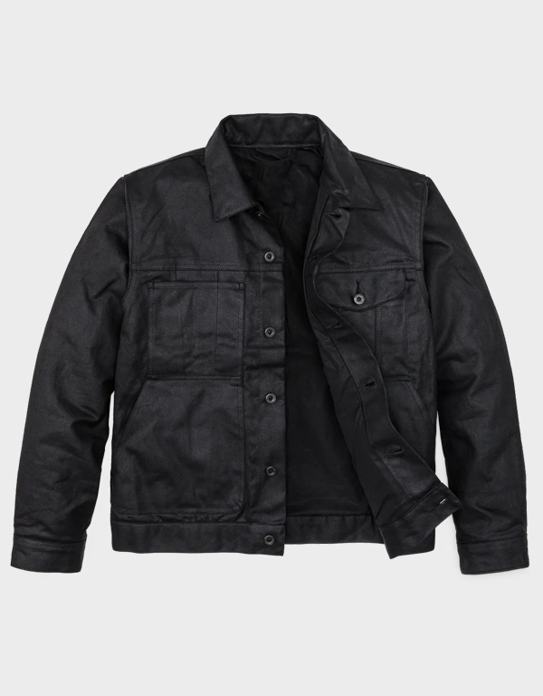 Men’s Black Short-Lined Tin Cloth Cruiser Jacket – Durable Style