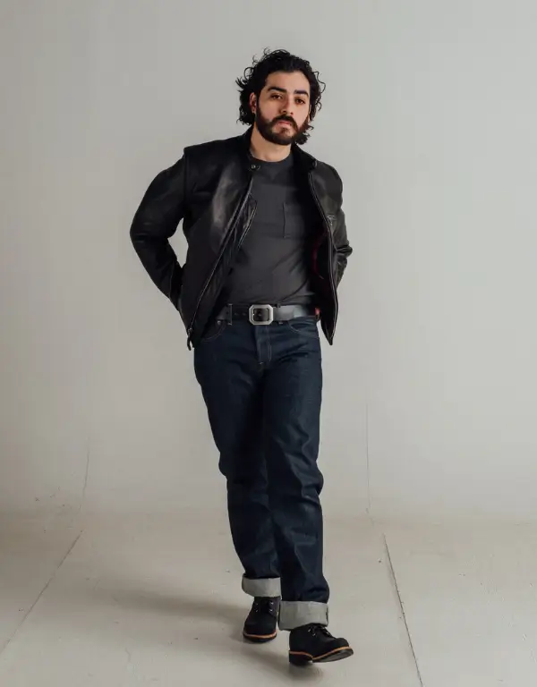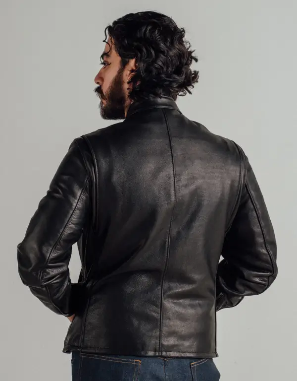 - Style: Men’s café racer / biker leather jacket