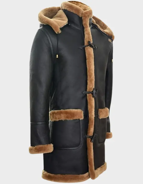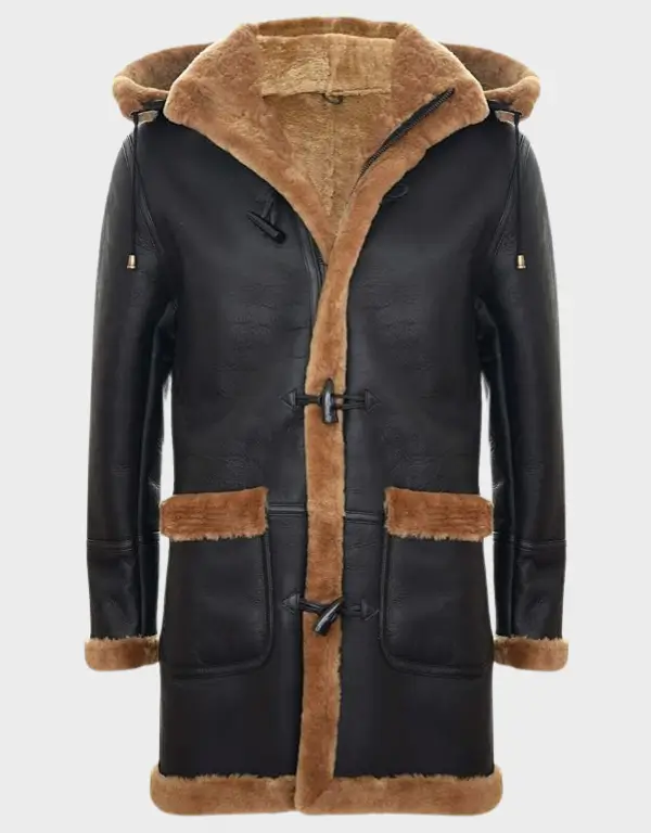Designed with a buckled neck strap, adjustable waist buckles, and a drawstring sheepskin hood, this coat blends functionality with refined style. Ideal for chilly outdoor days or evening strolls, it keeps you warm without compromising on class. For men who appreciate authentic craftsmanship, real sheepskin quality, and long-lasting outerwear, this sheepskin duffle coat stands as a true investment in comfort and timeless fashion.