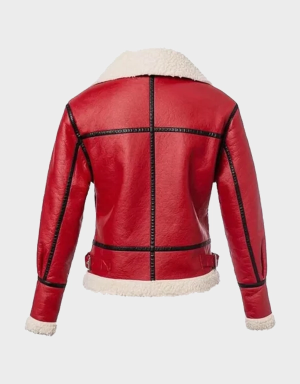 Turn heads this season in the Women’s Red Leather Shearling Jacket. Crafted from premium real leather and lined with plush shearling fur, this jacket delivers warmth and luxury. Featuring full-length sleeves, a classic shearling collar, and a front zipper closure, it combines timeless design with a vibrant red hue that adds a bold pop of color to your wardrobe. Two side and two inner pockets provide practical storage without compromising style.