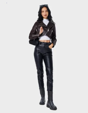 Cropped Leather Motorcycle Jacket